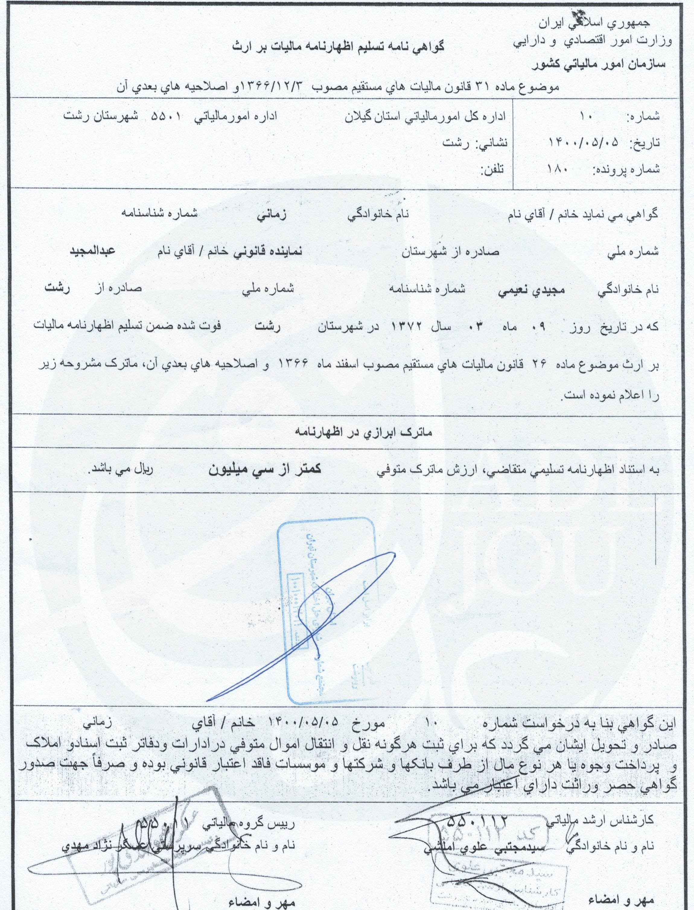 حضور وکلای دپارتمان تخصصی مالیات بر ارث در استان گیلان